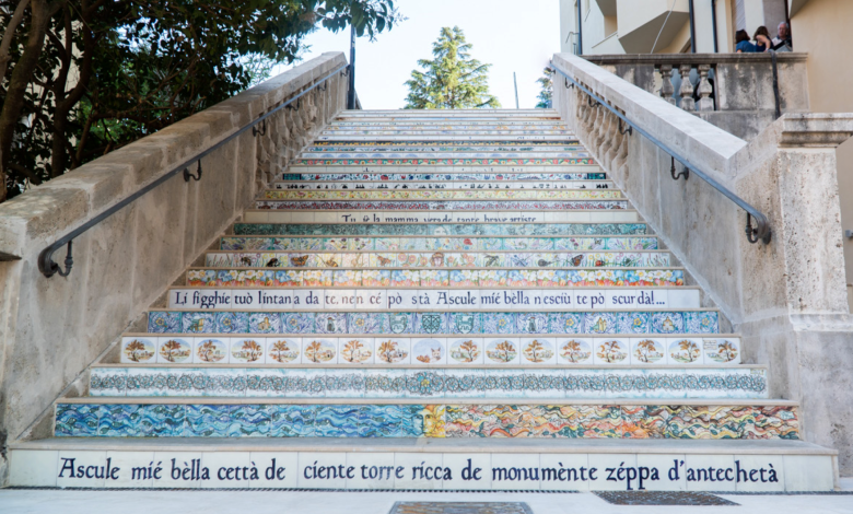 Saranno presentati i pannelli in maiolica ascolana, realizzati da ceramisti ascolani, allestiti sulle mura in travertino dei Giardini Pubblici, che conducono alla Scalinata Leopardi, inaugurata lo scorso anno e diventata l’opera simbolo di Ascoli Città della Ceramica.