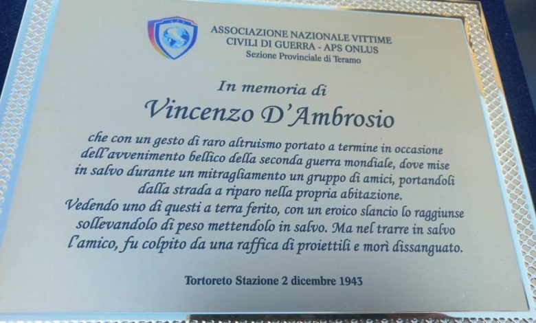 «Nel salvare un gruppo di persone nel mezzo di un mitragliamento aereo ad Alba Adriatica – spiega D’Ambrosio – davanti alla propria abitazione in via Roma, urlò loro di entrare dentro per mettersi al riparo, ma notando che il suo amico Nicola Scaramazza giaceva ferito a terra, non esitò a uscire per portarlo in salvo. Rientrando per ultimo, però, mio padre venne colpito e morì dissanguato, lasciando mia madre vedova con sei figli, tutti minorenni, dei quali oggi solo io sono ancora in vita».
